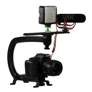 The 3 Piece Accessory Kit comes in handy for all types of solutions. In this setup we mounted an HD monitor and Shotgun Microphone directly to a DSLR Camera. The Scorpion Accessories are a great solution for quick setups of all kinds.