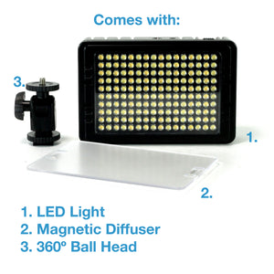 | (1) LED Light (1) Magnetic Diffuser (1) Ball Head |