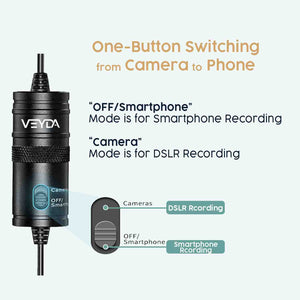 The VD-PL1 Lavalier microphone is a clip-on mic for smartphones, DSLRs, Camcorders, Audio Recorders, PCs, and more. The Omni-directional condenser microphone is a powered Lavalier microphone that is perfect for interviews, blogging, conferences, and even video chats. The Electronic Condenser captures crystal clear audio by plugging into the 3.5 mm headphone jack of your camera or smartphone, it is also compatible with the iPhone Lightning to Headphone jack that is included with your iPhone.