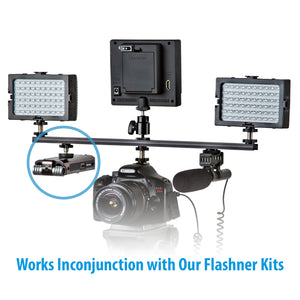 ¼”-20 Flashner Kits connect to your camera using a ¼”-20 Flashner and the cameras built in ¼”-20 socket.